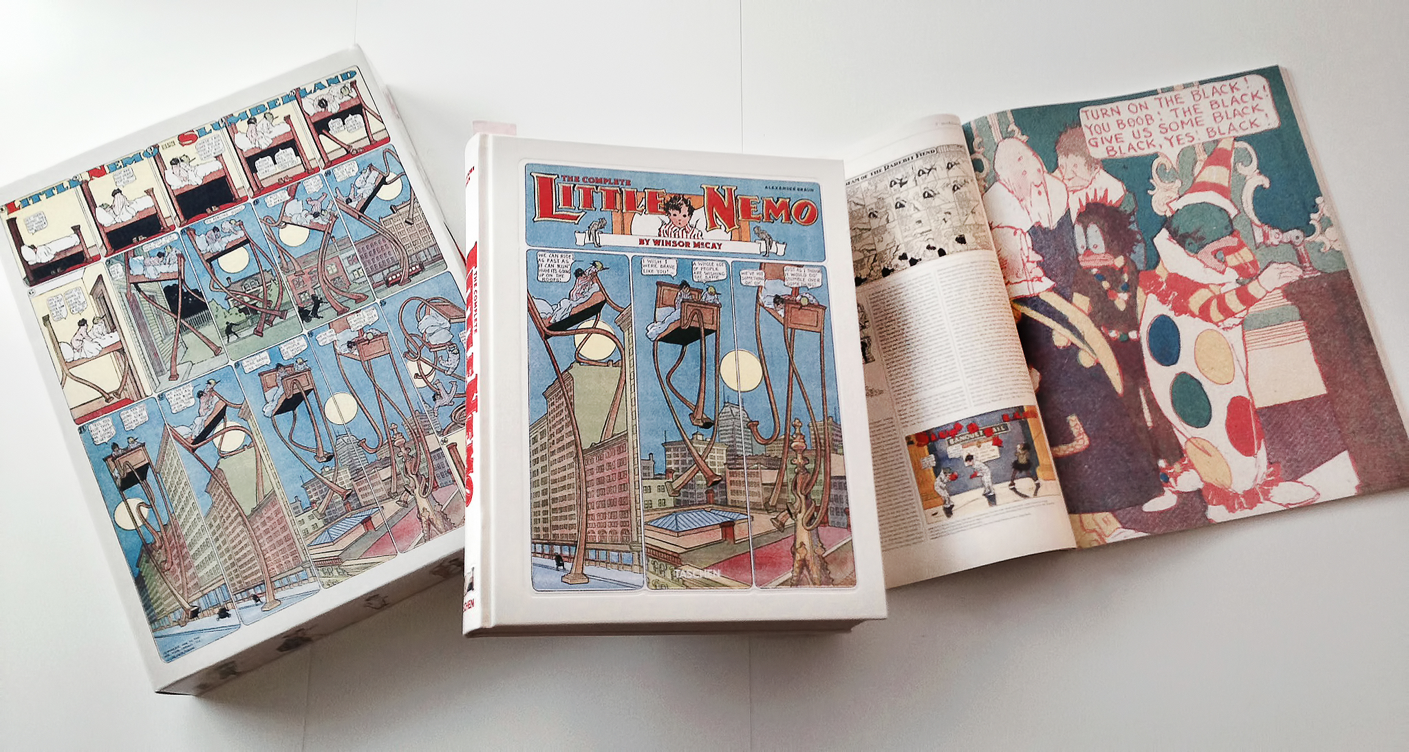 Winsor McCay. The complete Little Nemo é uma (literalmente) monumental edição lançada pela Taschen no final de 2014 que consiste em dois volumes de grande formato reunidos numa multicolorida caixa de cartão (que inclui pega para facilitar o transporte).