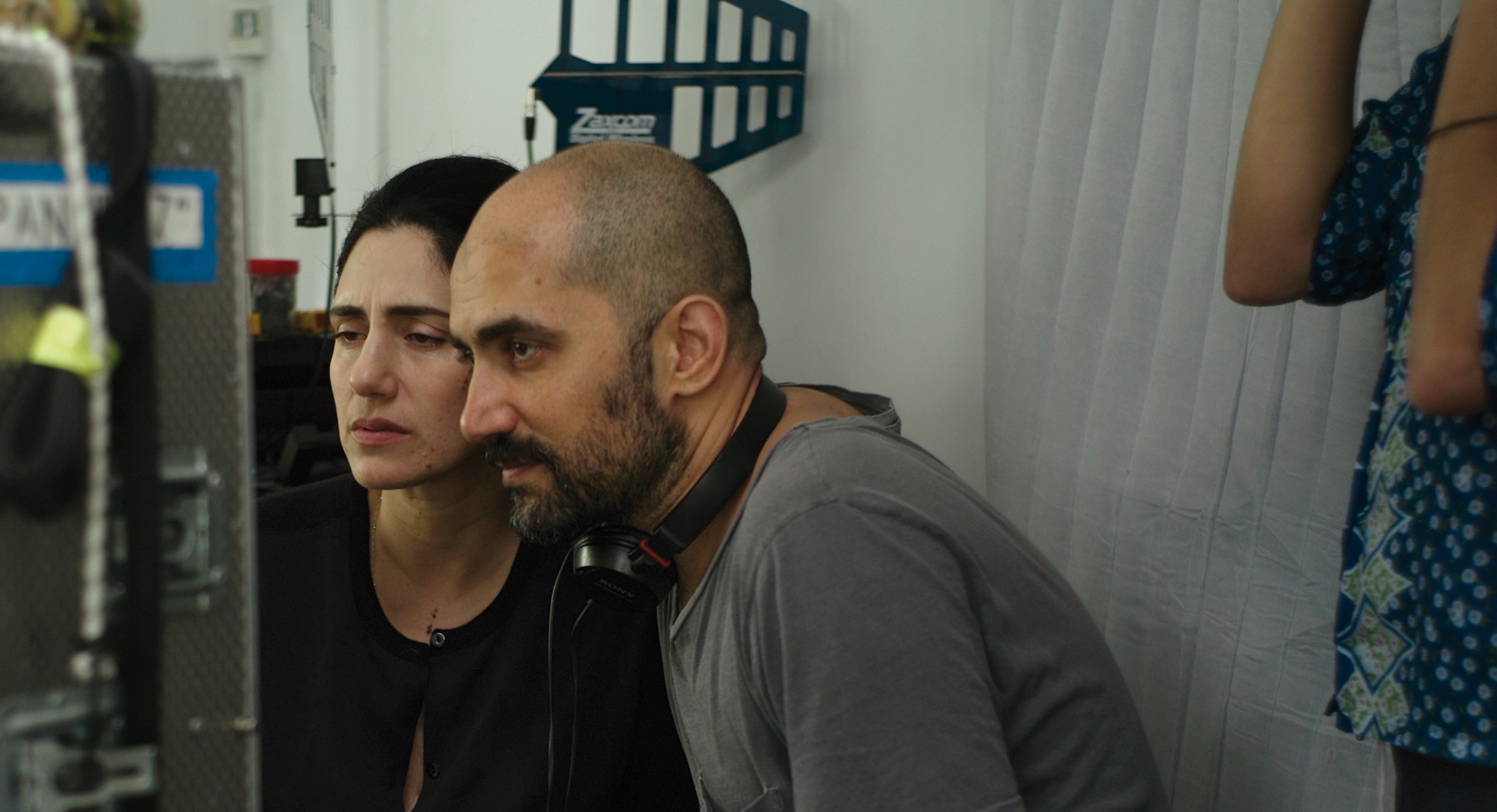 Pensámos muito sobre a maneira como íamos rodar Gett porque estamos num único espaço e porque tem um guião muito radical, de muitas maneiras – não podíamos apenas rodar o filme e esperar que as coisas acontecessem, esperar que as coisas se compusessem aí. Então, a certa altura da rodagem tivemos a ideia de um jogo de ténis. Quando se vê jogo de ténis, olha-se para os jogadores, vê-se o cenário completo e vê-se os jogadores a jogar… O que aconteceria se tirássemos este plano objectivo, o master shot? Livramo-nos dele e colocamos a câmara só onde os jogadores estão, e vemos a bola a dirigir-se para nós a 200 quilómetros por hora. E, no momento anterior a ela atingir a câmara, mudamos para o outro jogador, e o outro, e o outro. O que aconteceria se rodássemos o jogo inteiro assim? Ou o que aconteceria se rodássemos um filme, um drama de tribunal, assim? E no momento em que nos apercebemos que podíamos eliminar a objectividade do filme e, rodando-o assim, podíamos recriar o espaço vezes sem conta, com uma luz diferente, iluminando-o de forma diferente, e alternando o ponto de vista para descobrir a verdade do momento, seguimos esse instinto e essa foi a nossa descoberta. A ideia foi colocar a câmara só onde os actores estivessem. Se estou sentado perto de ti estarás mais perto e se estou mais longe será um plano aberto, e se estiver a meio caminho, um plano médio. Logo, não dissemos “Neste momento, faremos um plano fechado.” Perguntámos sempre “Onde é que o actor se senta? Onde é que está a outra personagem?” Foi aí que colocámos a câmara e usámos a mesma lente durante toda a rodagem e tentámos criar… Sabes, um dos problemas que tivemos foi que esta personagem, Viviane, não falava, não se movia, não saía da cadeira, ela estava completamente presa. Ela não tem nenhum diálogo, mas ainda assim o filme assentava em si, por isso tivemos de criar e encontrar uma linguagem cinemática que fizesse Viviane falar. Assim, filmámos primeira as pessoas que falam, mas depois começámos a rodar o filme mudo – nos pontos de vista. E tentámos fazer Viviane falar através do elenco. Através do que Viviane vê e como os outros a olham, e o que a combinação de todos estes pontos de vista criam para ela. Queríamos dar-lhe voz, fazê-la falar e andar quando ela está sentada, sem falar, para podermos retratar o diálogo interior de Viviane.