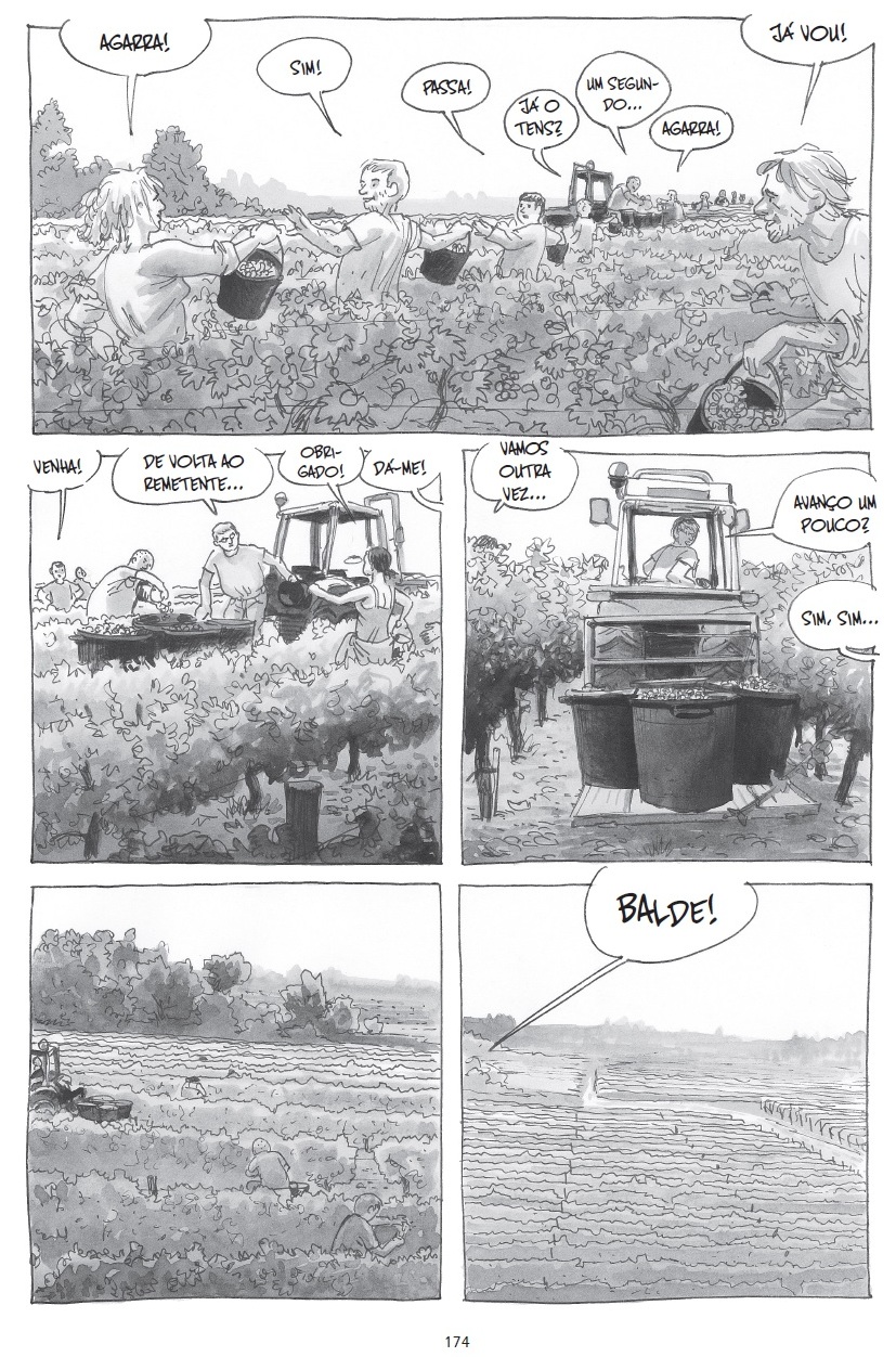 Ao mesmo tempo Davodeau vai passando livros ao viticultor que, lendo-os de noite, tem assim mais temas para conversar no dia seguinte. E desde uma reflexão sobre Maus de Art Spiegelman a um embate que Leroy tem frente à obra de Moebius (que todos lhe dizem ser de referência mas que ele não gosta) tal como o vinho e a vinha, também a BD se torna aqui num universo de reflexões. Que não se esgota nos livros já que o par protagonista visita festivais de BD que permitem alargar pontos de vista sobre estes universos que vamos (re)descobrindo.
