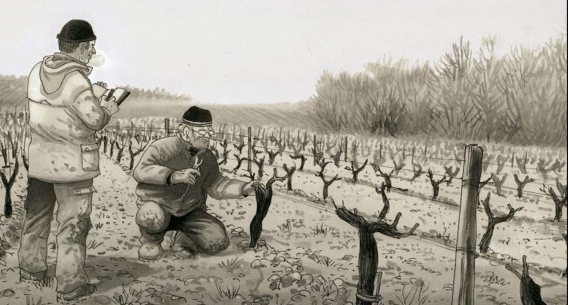 Étienne Davodeau encontra um compasso certo para a apresentação dos temas que quer mostrar e debater seguindo os ritmos dos trabalhos em curso. Os do campo são prioritários, começando de inverno, com todo um quadro de ações a desenvolver para que a vinha possa tirar o melhor da terra. A relação com os solos e as opções que Leroy toma são ponto de partida para que não estejamos apenas num plano contemplativo como observadores, mas sejamos antes convidados a escutar a discussão dessas escolhas.